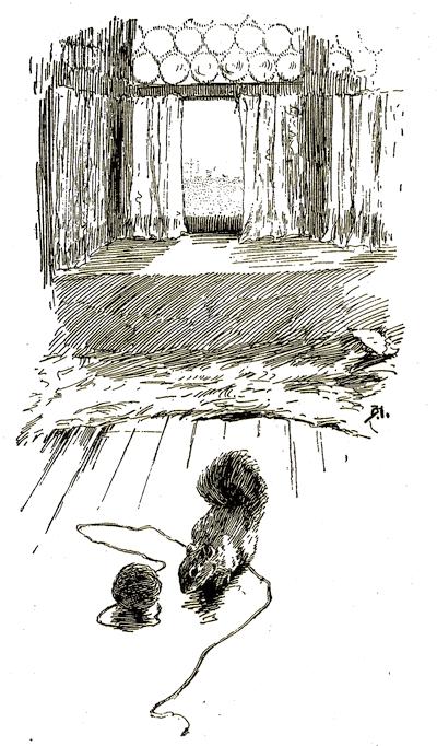 His lady had to be gone all one day, so she left him in his cage as she always did when she went out. When she got back, there was poor Little Mitchell with the cotton in his nest wrapped all tight about his tail. He had struggled to get free until his tail was all twisted and torn. Oh, but he[216] was glad to see the lady! She did not even stop to take off her things before she pulled the cotton out of the nest, and took Little Mitchell out and carefully untwisted the poor tail, from which the skin was off for a third of its length. You can imagine he was a queer-looking fellow then! But the lady took good care of him, and bathed the tail every day, and put oil on it to make the hair grow. It was a pretty sad-looking tail, and she feared the hair never would grow on it again; but it did.