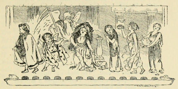 [Laughs.] Hush! That is my secret! I steal them for him! Though I present them to him with my father’s greetings, else, so honest is he, he would make me put them back! [The Others exclaim.] Yet, do you know, sometimes I fancy my father sees the theft, but turns his head aside!