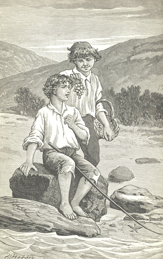 When Edmund was about twelve years old, his friend Gilbert sent for him one day, and told him that his master had given him leave to have a boy in the house to assist him, and that his master told him he might choose one in the neighbourhood. Several were anxious to get into such a good place: but Gilbert said that he preferred Edmund before them all, because he knew him to be an industrious, honest, good natured lad, who always told the truth. So Edmund went into service at the vicarage; and his master was the father of Isabella and Caroline. He found his new way of life very pleasant; for he was well fed, well clothed, and well treated; and he every day learned more of his business, in which at first he was rather awkward. He was mindful to do all that Mr. Gilbert required of him; and he was so obliging to all his fellow-servants that they could not help liking him. But there was one thing which was at first rather disagreeable to him: he was obliged to wear shoes and stockings, and they hurt his feet. Besides this, when he waited at dinner he made such a noise in walking that his fellow-servants laughed at him. He told his sister Mary of his distress, and she made for him, after many trials, a pair of cloth shoes, with soles of platted hemp. [7] In these he could walk without making the least noise; and as these shoes could not be worn out of doors, he was always sure to change them before he went out; and consequently he had always clean shoes to wear in the house.