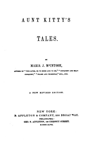 It has been several years since Aunt Kitty last presented herself to her young friends, yet she hopes that she has not been forgotten by them, and that her reappearance will give them pleasure. She introduces to them in the present volume no new acquaintance, but she offers to them, in one group, all who formerly interested them. Blind Alice and her young benefactress—Jessie Graham and her ardent, generous, but inconsiderate friend, Florence Arnott—Grace and Clara—and Ellen Leslie, will here be found together. They have been carefully prepared for this second presentation to the public by Aunt Kitty's own hand. It is hoped that her efforts for their improvement have not been wholly unsuccessful, and that they will be found not altogether unworthy teachers of those lessons of benevolence and truth, generosity, justice and self-government, which she designed to convey through them.