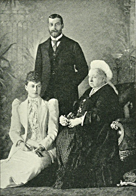 The King’s anxieties during the trying period which followed the death of his beloved mother were much increased by the state of health of his only surviving son. The Duke of Cornwall and York fell ill with German measles, and, to his lasting regret, it was absolutely impossible for him to attend the funeral of his venerated grandmother. His Royal Highness, however, thanks to the devoted nursing of his wife, made steady progress towards convalescence.