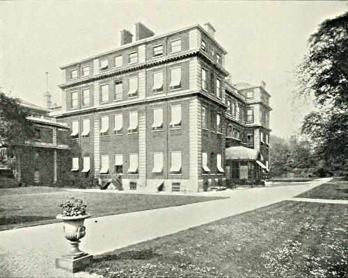 The King generally takes the chair at the annual dinner of the Squadron held at the old castle at West Cowes, built as a fort by Henry VIII., which became the headquarters of the club in 1858. This festivity is the great event of the year for all well-known yachtsmen. There is an interesting display of plate, including the Queen’s Cup, the Nelson Vase, and the beautiful model of the Speranza, which once belonged to Lord Conyngham. His Majesty presented a few years ago twenty-one cannon to the club-house at Cowes. They were taken by him from the Royal Adelaide, the toy warship placed by William IV. to guard the artificial ocean of Virginia Water. Now they are used for firing salutes.