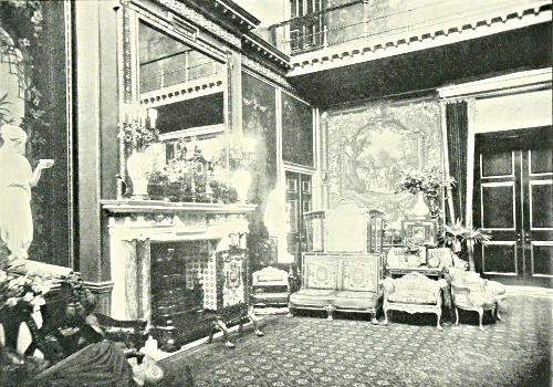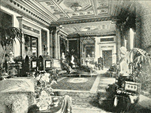 The Derby-Day dinner is certainly one of the most important functions held at Marlborough House during the year, and it is now difficult to believe that it was only inaugurated comparatively few years ago. Something like fifty invitations are sent out, and the guests, who are all men, are expected to wear evening dress, not uniform. The great silver dinner-service ordered by the King on his marriage, which cost some £20,000, is always used on this occasion, and on the side buffet are to be seen His Majesty’s racing cups, hunting trophies, and gold and silver salvers, for everything in the strong rooms which is associated with sport is brought out.