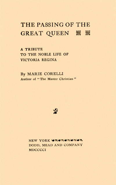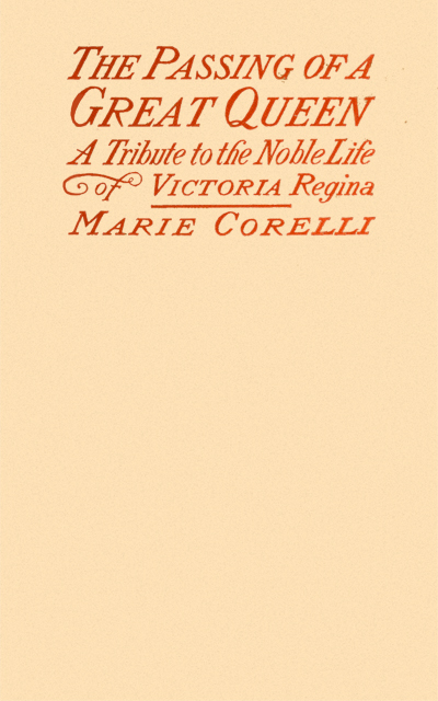 WAR and rumours of war,—nation rising against nation,—these fulfilled and yet threatening disasters have culminated in the worst disaster of all, the “passing” of the greatest, purest, best, and most blameless Monarch in our history. England’s Queen is dead! The words sound as heavily as though one should say, “The sun is no longer in the sky!” Strange indeed is it to think of England without the Mother-Queen of the great British people;—to realize4 that she, the gentle and beneficent Lady of the Land, has left us for ever! We had grown to think of her as almost immortal. Her goodness, her sympathy, were so much part of ourselves, and were so deeply entwined in the very heart and life and soul of the nation, that we have seldom allowed ourselves to think of the possibility of her being taken from us. Always apparently “well,”—never permitting her subjects to think there was anything the matter with her,—bearing bravely such trials and bereavements as would have broken down the health and nerve of many a stronger and younger woman, she was always as it seemed, ready to our call. We,—spoilt children of long-favouring fortune,—had grown accustomed to believe she would5 always be thus “ready,”—that our constant prayer and chant which all we in our generation have sung since we were children—“God Save the Queen!”—would be so potent and persuasive as to altogether disarm the one invincible Angel who, when the hour of his solemn visitation comes, will take no denial, but
