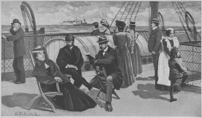 They come to Maggie’s with a pretty, good natured French maid, not knowin’ of the sickness there, and Maggie wouldn’t let ’em go, as they wuz only goin’ to stay a few days. They wuz hurryin’ home to San Francisco on account of some bizness that demanded Dorothy’s presence there. But they wuz only goin’ to stop there a few days, and then goin’ to start off on another long sea-voyage clear to China, stoppin’ at Hawaii on the way. Warm climate! good for measles! My heart sunk as I hearn ’em tell on’t. Here wuz my opportunity to have company for the long sea-voyage. But could I––could I take it? Thomas Jefferson gently approached the subject ag’in. Sez he, “Mother, mebby Tommy’s life depends on it, and here is good company from your door.” I murmured sunthin’ about the expenses of such a trip.