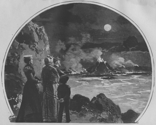 “I wonner what makes the smoke roll and roll up so and feather out the sky, and I wonner what my papa and my mama is doin’ and what my grandpa will do––they will be so lonesome?” Oh, how his innocent words pierced my heart anew, and he begun to kinder whimper agin, and Aronette, good little creeter, come up and gin him an orange out of the lunch-basket she had.