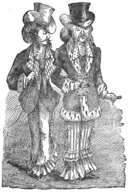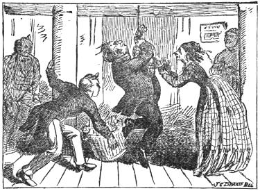 I thought of the fragile form bendin’ over the lean and haggard horse, and totterin’ away, withered by age and grief, in the swallow tailed coat, and says I in a pityin’ accent,