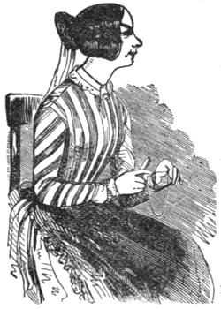 I sot silently in my chair like a statute, while she remarked thus, and as she paused, I says to her agin, fixing my mild but stern grey eyes upon her weary form, bendin’ over the dilapitated folds of the 8th.