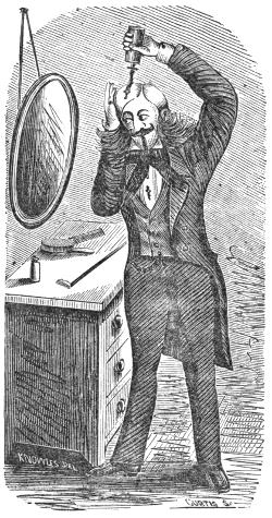 “Nothin’” says he, “Only I met one of the first mourners—I mean one of old Slimpsey’s sisters there, and she told me about it, she said that sense the Editer of the Auger was married, and sense Betsey had got back from New York she had acted like a wild critter. She seemed to think it was now or never. The awful doom of not bein’ married at all, seemed to fall upon her, and craze her with wild horror. And findin’ Slimpsey who was a weak sort of a man any way, and doubly weakened now by age and inflamatory rheumatism, she went and took care of him, and got the upper hand of him, made him a victim and[410] married him, at his own house, Sunday night at half past seven.”