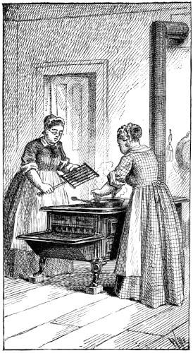 Wall, as I was a sayin’, Kitty had been gone two weeks, the day Nathan and Cassandra visited me, and this letter from her, brought in to me while I was a gettin’ the dinner onto the table, brought news that 482was startlin’ and agitatin’ in the extreme. I was jest a stirrin’ some sweet cream and butter together over the stove, havin’ a fresh salmon trout for dinner, and Josiah bein’ fond of that kind of gravy to eat with it, and Nathan bein’ such a clever creeter, offered to stir it for me, while I read the letter. And I was so anxious to git the news, that I let him do it, though, the stove bein’ so hot, take it with that and his burnin’ blushes, it made a pretty hot time for him.