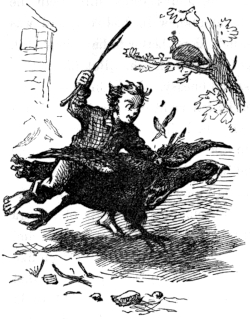And out on the end of a slender bush that hung over the water, a bird swayed and swung to and fro, and sung out a dretful sort of a sweet song, yet sad like. 490Some as if it was practicin’ over a farewell song to its home, its happy nest, before it sailed away south in search of a balmier climate.