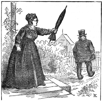 476“But I never felt that way. Now, as fur as my own feelin’s are concerned, I think memories can haunt anybody, and hearts can ache jest as severe under a white dress as a black one, and visey versey. Hearts can beat gay and triumphant aginst bumbuzeen bodist waists and crape trimmin’s. But Miss Bamber feels different. She feels that she can’t mourn without certain conveniences. And feelin’ in that way, and feelin’ that it would be a duty and a privilege for her to mourn for her mother-in-law, I say that woman shall have the wherewith to do it with. I say she shall mourn if she wants to; she shall be helped to a black dress. There hain’t a member of the meetin’-house but what can give a six-pence without feelin’ it. We want to keep it all still from Miss Bamber, and get it, and get it all made for her before she knows a thing about it. And,” says I, “mebby you had better give me the six-pence to-day, as we have got it about all collected, and want to get the dress right away.”