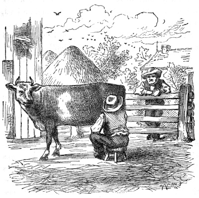 “Wall,” says I, bein’ wore almost completely out, “I must go and skim the milk for the calves.”