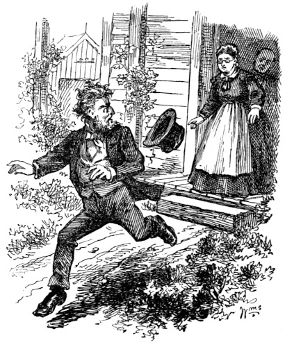 I was down to the creek lot, pickin’ a few berries for supper, when Josiah told me on’t. It had got a little later than I thought for, and Josiah had come down after me, bein’ worried about me. It was only a little ways from the house. I had put the tea-kettle 488on, and sot the table, before I had come out, and the tea-kettle was a bilin’, so Josiah said, after he told me the news. The news was thrillin’ and agitatin’ in the extreme. He said Kellup Cobb had disappeared the night before, after the news of Kitty’s marriage had got abroad in Jonesville. They said that he felt so that he disappeared, he and the hearse and Elder Judas Wart—the hull three on ’em. Kellup had been on intimate terms with Judas Wart for some time; and some think that Kellup bein’ so cut down by Kitty’s marriage, and the Elder bein’ so cut down by my witherin’ eloquence and Josiah’s broom-handle, that they both got into the hearse, and drove off in it to Utah to jine the Mormons. And some think that they sold the hearse, and took the money, and went to Salt Lake by rail. Which last way, I told my Josiah, when he mentioned it, was the proper way to go there, if it wuz the right kind of a rail. But anyway, they had gone, the hull three on ’em, and there hain’t been a word heard from ’em sense in Jonesville.