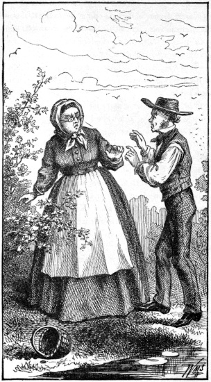 And he took the hint and started off, and glad enough was I to see him go. But jest as he went down the steps, and I turned to go into the buttery, I see a paper of indigo that Marier Burpey had left here that very day. She had forgot it, and I knew she was in a hurry a colorin’; so I jest carried it to the door, and asked Kellup if he would carry it to her, knowin’ he had to go right by her door.
