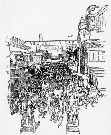 Oh, how dead sick I’d git of their talk, Coney Island! Luna Park! Well named, I’d say to myself, it is enough to make anybody luny to hear so much about it. Steeple Chase! chasin’ steeples, folly and madness. Dreamland! night mairs, most probable. Why, from Serenus’ talk that I hearn onwillingly about toboggan slides, merry-go-rounds, swings, immoral railways, skatin’ rinks, diving girls, loops de loops, and bumps de bumps, trips to the moon and trashy shows of all kinds I got the idee there 5 wuzn’t nothin’ there God had made, only the Ocean and the little incubator babies, though them two shows wuzn’t what you might call similar and the same size. Why, I myself, with my powerful mind, would git so cumfuddled hearin’ his wild and glarin’ descriptions, that my brain would seem to turn over under my foretop, and I didn’t wonder at Josiah’s bein’ led away by it, much as I lamented it, for he soon declared that go there he would.