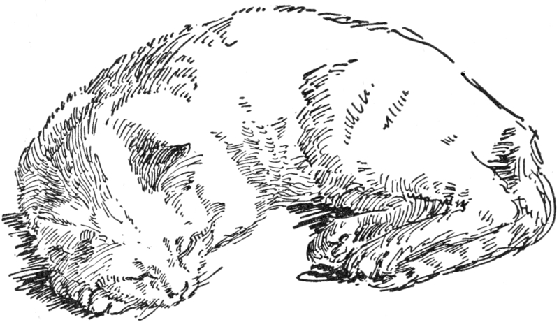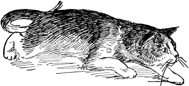 Ban-Ban, Tommy Traddles, ’Clipsy, and little Nugget slept around Rob, fitting themselves beautifully and cosily around and into the curves of his body. Of course Kiku-san crept into Lois’s arms, but Madam Laura, Bidelia, and Dolly Varden and Puttel added themselves to her couch, and the little girl fell asleep, supremely happy, for the more cats the merrier Lois was—she never could get enough of their purr and their fur.