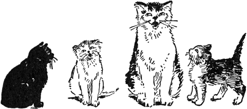 Six cats and three kittens led a procession of at least a dozen more cats out of the town and along the wooded country roads. Ban-Ban was ahead. He had a big red bow on his collar, which poor Rob had tied on, intending the Maltese cat to look his best when expected company should come that evening. He little thought that he was adorning Ban-Ban for a journey, and a parting that was going to cost himself keen grief!