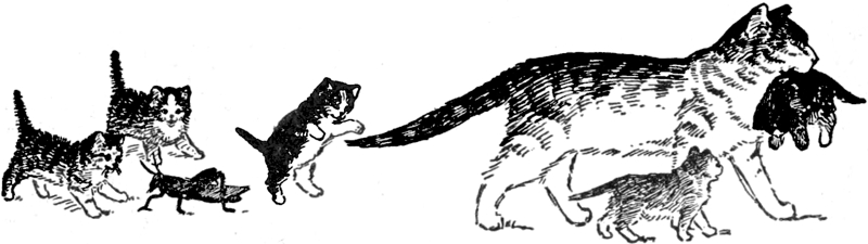 The Purrers had never seen Bidelia so excited, and the gentlemen of the place looked at one another, feeling very useless indeed, as the ladies ran off, attended by all the kittens.