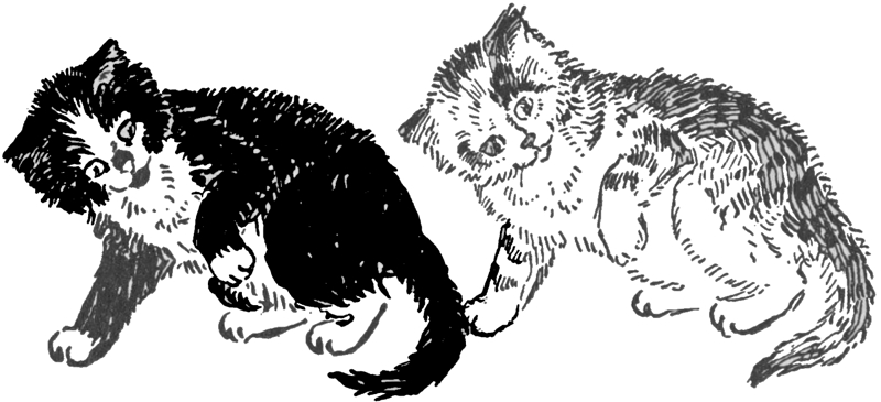 The three kittens scampered off, and Ban-Ban with much effort kept himself from pouring out to Bidelia the Great Idea. Fortunately the kittens so quickly got together the cats for whom they were sent that Ban-Ban was saved from choosing between telling or having a fit.