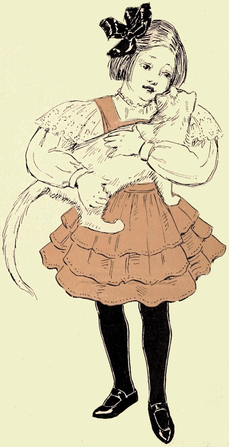 The last and dearest of Ban-Ban’s friends was Kiku, the snow-white cat, whose name was a Japanese word that means chrysanthemum, and whose nature was as flower-like as his name. He lived next door to Ban-Ban, and played with him most of the time. His little mistress was Rob’s dearest friend, his cousin, and her name was Lois. She was a year younger than Rob, which made her only seven years old, but she was not the least bit careless or rough with her pets, as some children are, and Kiku was a very lucky “kitteny-wink, little white lambkin,” as Lois called him.