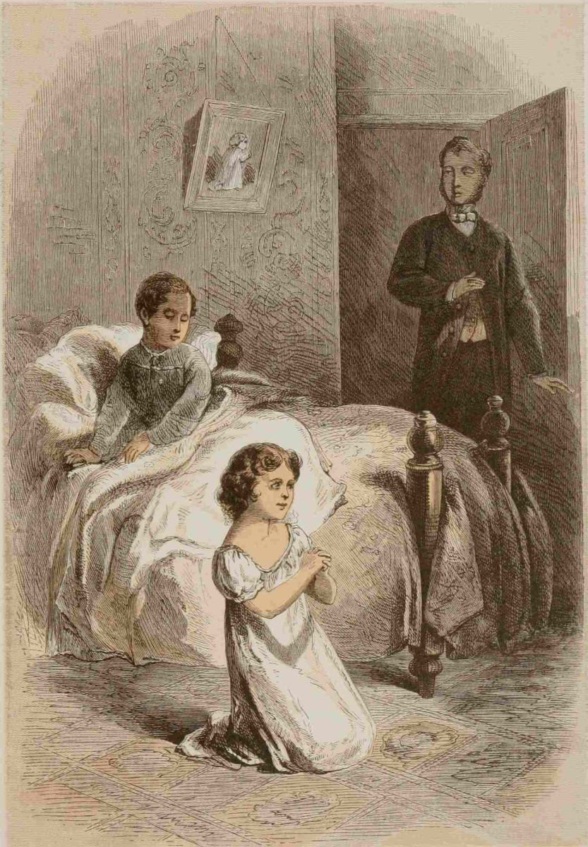 Then, sinking to her knees, she put her hands together and raised her pure face—angelic in the father’s sight—as the moonbeams revealed its expression of meek devotion.
