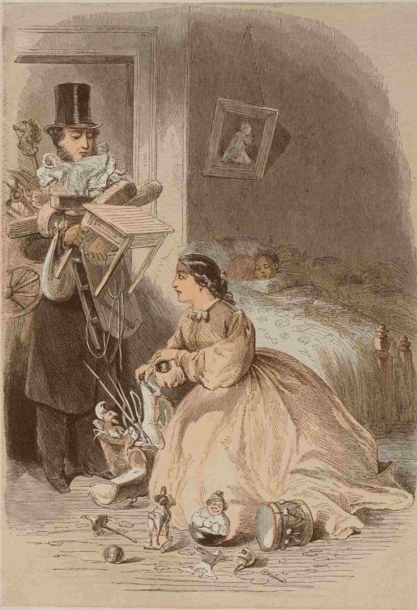 Thus resolving, he entered the largest and most brilliant toy emporium he had yet seen, and making his way, with considerable labor, through the throng of eager buyers, presented himself at the counter. Luckily, the saleswoman nearest him had just dismissed a customer, and turned to him with an engaging smile. She looked tired—as well she might, poor thing! having been on her feet for twelve hours, and hard at work all the time—but it was not in a kind-hearted tradeswoman’s nature to be cross on Christmas eve.