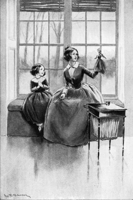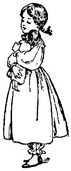 My parents had arrived late at night, and the trunk was unpacked with much ceremony the next morning. Under my mother's best new dresses was a long pasteboard box which she opened, smiling at our expectant faces. From it she drew the biggest, prettiest doll-baby we had ever seen, in a blue silk frock with a sash to match. She had real hair, curly and black as a coal, and round black eyes and a cherry-ripe mouth. I reached out both hands, and a cry of rapture rushed from my heart to my lips—an inarticulate gurgle of ineffable happiness.