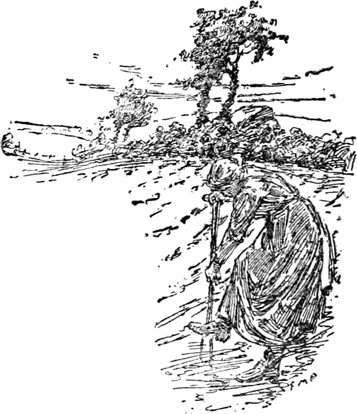 The sun was setting as she took up her hoe and turned homeward. At the gate she stayed a minute or two, as if to say good-bye. To her eyes the scene was almost sacred. There were the fields with all the young growth of the early spring, and beyond this was the rough outline of the hedges where the rabbits played. There were the hills where the brown trees reached up to the firs, and from beyond which[Pg 77] there often came the roar of the ground swell when the great Atlantic breakers thundered on the shore. The very birds had been her company and friends, and she loved them every one—the lark that went soaring upward with an evening hymn; the thrush and the blackbird that piped from the tree top; the rooks that went slowly homeward, a very cloud in the sky, all had come as if to solace and gladden her, and she blessed them all. Her heart went out in thanks to God, as the memory of a thousand mercies rose within her. She took the old worn mit[Pg 78]tens from her rough, red hands with a sigh, and shut the gate as if she were shutting that chapter of her life.