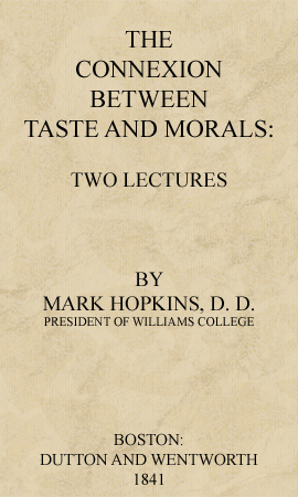 But again, I infer that there is a connexion between good taste and good morals, because there is an analogy between those qualities in matter which excite the emotions of taste, and those relations on which morals depend. So much is this the case, that some philosophers found morality upon a theory of the beautiful, considering it a sublime harmony. In all beautiful objects in nature, or in art, there is an order, a propriety, a fitness, a proportion; and the impression which these make upon us is so analogous to that which is made by virtuous conduct, that we use the same terms to express both. To me, indeed, it seems that beauty in matter is to moral beauty what instinct is to reason, or what the light of the moon is to that of the sun; containing some of the same elements, but destitute of the highest. Hence,[Pg 14] as we should naturally expect, morals furnish that region in the province of taste in which she gathers those flowers that are richest in beauty and sweetest in perfume.