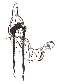 None of them saw the White Lady steal into the Square. None of them saw her approach the Wishing Post and make a wish. But she did. “I wish,” she said softly—and a beautiful light shone from her eyes, “I wish to be as warm as he who sought me from the South.” So, of course, she had her wish, and joined the others to tell them of her good fortune.