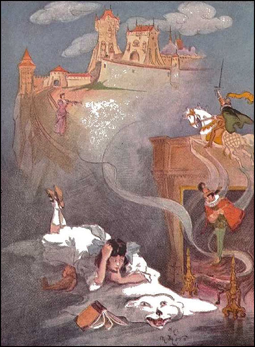 She grew so intent on the wonders told her by the Man with the Growly Voice that now and then she would miss something he said. Then Aunt Mary would laugh as14 if Maida were drowsy, which of course she wasn’t. Of all his tales the Wishing Post was the best. If she could only go there and wish herself grown up, oh, wouldn’t that be splendid. So she made him promise to take her on his next voyage. She was so happy when he said he would, she shut her eyes to think about it, besides the light was very bright and—well, to this day Maida doesn’t remember what else the Man with the Growly Voice told her that night.