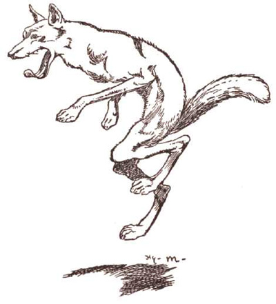 The Man with the Growly Voice took another tablet of climate from his pocket and just as the wolf rushed at them with wide open jaws, he tossed the tablet in its mouth. My, what a surprise for that wolf! He36 thought he was going to have a nice little girl for breakfast, and presto! he had swallowed three or four days of awfully hot weather. He rolled and yelped and jumped about—well, if you want to know just37 exactly how he behaved, borrow a tablet of climate from the Explorer; go up there where Maida was, and give it to the first wolf that comes along. Then you’ll see.
