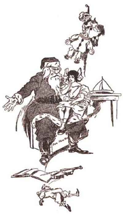 But the boy—well, he was rather naughty. He simply made a face at her and ran away. Just then Santa Claus bustled up to her with Billy following him. Both had recovered their clothes and thrown away the old rags—so Billy looked just as nice and Santa Claus just as jolly and rubicund as ever.
