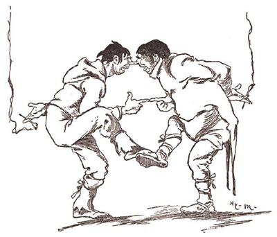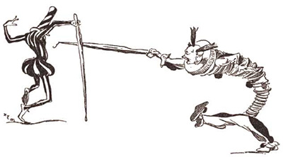The first person she met was Kankakee.175 She gave him a scoldings but Kankakee paid no attention; he only laughed, and when Aurora threatened him, he only laughed the more.