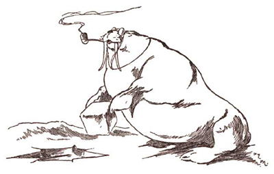Then the Man with the Growly Voice appeared in the door with a look of dismay on his face. “I was in such a hurry to get away,” he said, “that I forgot to bring a single thing to eat. Isn’t that just like an Arctic Explorer? You see we’re so anxious to explore we forget all about such things as food and clothes and fuel.”