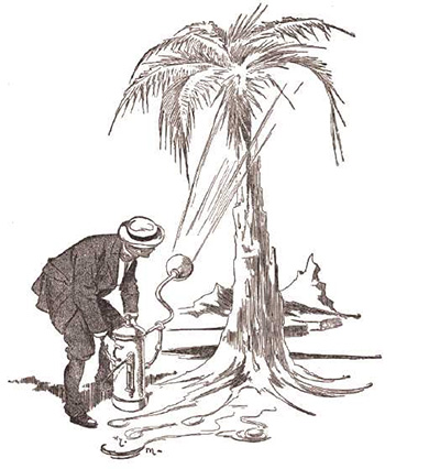 “That,” said the Explorer, “is a tablet of condensed climate. I gathered it in Mexico. Down there they have very warm weather, very warm indeed, so I simply condensed the heat into these little tablets; and that33 reminds me, I’ve a tin can full of it on the airship. I’d better get it as I think we’ll need it. The tablets are not very strong. One of them will only heat up a city for a year or so, but I’ve enough in the can to turn Greenland into Africa.” So he strapped the can of condensed climate on his back.