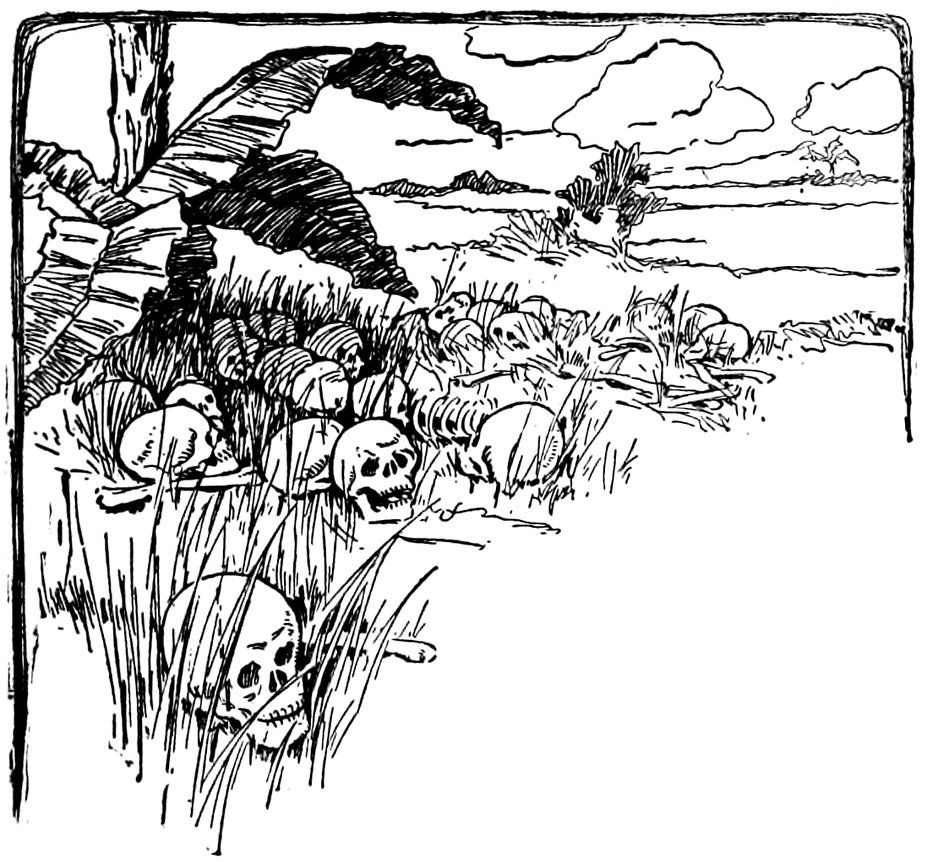 So he conducted us to a framework of sticks, under which was burning a slow fire, and there they were, the right hands—I counted them, eighty-one in all.
