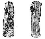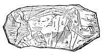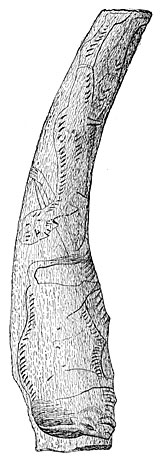 The radius of a mammoth was discovered at Chaleux, occupying a place of honor on a large sandstone slab near the hearth. The Chaleux Cave dates from the Reindeer period; at which time the mammoth had long since been extinct in Belgium, so that there can be no doubt that the cave man had taken this bone from the alluvial deposits of the preceding epoch, and this huge relic of an unknown creature had been the object of his veneration, a lar or protective divinity of his home. A somewhat similar fact was discovered at Laugerie-Basse and, by a strange coincidence, certain tribes of North America of the present clay preserve the bone of a mastodon or of a cetacean in their buts as a protection to their homes.