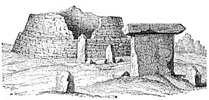 At the same period the two rites appear to have been practised simultaneously in Armorica, but there incineration was the dominant custom. In one hundred and forty-five megalithic monuments supposed to date from the Neolithic period, seventy-two give proof of incineration and twenty of inhumation only. The others yielded a few cinders, but it was impossible to come to any definite conclusion. In many cases, as we have seen, the megalithic monument was surrounded by a double or triple enceinte of stones without mortar. Inside these enceintes were some small circular structures made of stones reddened by the action of heat. In the lower part of these structures were openings to admit a current of air to fan the flames. These strange structures, full of cinders and black greasy earth, bear the significant name of Ruches de Crémation.33 Of thirty-nine sepulchres of the Bronze age twenty-seven gave evidence of incineration, two of inhumation, whilst ten decided nothing one way or the other.34 The dolmen of Mont St.-Michel and that of Tumiac are separated by a short distance only; they were erected by the same race and probably about the same period, yet at Mont St.-Michel we find incineration, while inhumation was practised at Tumiac. How explain this difference in funeral customs? Does it imply a diversity of race, of caste, of religion, or of social position, or may it not rather be explained as being merely the result of those later displacements which upset the most careful reasoning?
