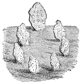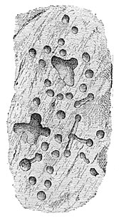 May we give a religious interpretation to the basins and cups hollowed out on rocks and erratic blocks and on the so-called Roches Moutonnées, with other monuments that have endured for many centuries (Figs. 111 and 112)? Or must we attribute them merely to passing caprice? Their number and importance we think forbid the latter idea. We find such blocks in Switzerland, in England, France, Italy, Portugal, and on the frozen shores of the Baltic. They are no less numerous in India, and they figure in the curious pictographs of the two Americas. There is no doubt that we have here a common idea, and one it is impossible not to recognize. How. else can we account for the similarity of arrangement in the cup-shaped sculptures from the tumuli of Schleswig-Holstein and those on the Indian rocks of Kamaou, or between those of Algeria and of England?
