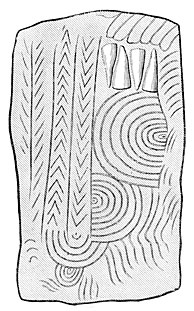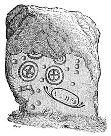 In Brittany and in Scotland these cup-like sculptures are found on rocks and menhirs, on the walls of sepulchral chambers, on stones forming the sides of kistvæns, accompanied in many instances with radiated circles, which do not, however, help us to understand them better. In Scandinavia they are known as Elfen Stenavs, or elf stones, and the inhabitants come and place offerings on them for the Little People. According to a touching tradition, these little people are souls awaiting the time of their being clothed once more in human flesh. In Belgium these strangely decorated stones are attributed to the Nutons, dwarfs who are very helpful to mortals. In every country there is some legend sacred to the sculptured stones.