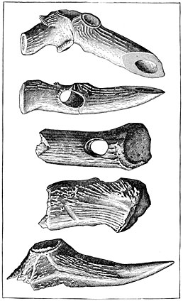 The most ancient inhabitants of Hungary, however, cannot be traced further back than to Neolithic times. In that country have been found, with polished stone implements, thousands of objects made of stag-horn, or bone, almost all without exception finely finished off. The discovery of copper tools and ornaments of a peculiar form in the Danubian provinces, bears witness to a distinct civilization in those districts, and confirms what we have just said about a Copper age.