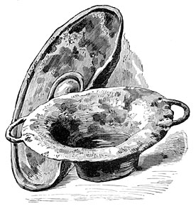Similar facts are noted at Watsch, at San Margarethen, and at Vermo in Styria, at Rovesche in Southern Carniola, and at Rosegg in the valley of the Drave. At Watsch, but ten skeletons were found, among two hundred examples of incineration. In the cremation sepulchres, if we may so call them, the cinerary urn was protected by large slabs; while in those where burial was practised, the bodies were simply confided to the earth as at Hallstadt; but by a singular contrast, the latter tombs contained much more important relics, the objects with the dead being more valuable and of finer workmanship. At Rovesche, the urn was placed in a square chest made of unhewn stones. The buried bodies lay with the head turned toward the east, an urn was placed at their feet, and their shrouds were kept in place by bronze fibulæ, while on the fingers were many rings of the same metal.