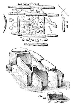 On the other hand, the earliest inhabitants of Latium buried their dead. Visitors, who probably came by way of the valley of the Danube, introduced the new custom, and for a long tune the two rites were practised side by side. At Felsina and at Marzabotto we find instances alike of inhumation and cremation, and at Vilanova only half the tombs are those of corpses that had been cremated. In 365 of the tombs excavated in the Certosa, near Bologna, only 115 show signs of cremation having been practised. At Rome, the two rites were long both performed, probably, however, by the two distinct peoples who formed the primitive population of the town of Romulus. We know that Numa Pompilius forbade the burning of his corpse; Cicero relates that Marius was buried, and that Sulla, his fortunate rival, was the first of the Cornelia gens whose body was committed to the flames. We do not know how early cremation was introduced in Gaul; we can only say that Cæsar found it generally practised when be made his triumphal march across the country.31 The celebrated excavations of Moreau prove that inhumation and incineration were both practised among the Gallo-Romans established in the eastern provinces of France. We may even assert that the two rites were practised long before the introduction of the use of metals. One thing is certain, the custom of cremation was but slowly abandoned as Christianity spread, for Charlemagne, in an edict dated 789, ordered the punishment of death for those who dared to burn dead bodies.
