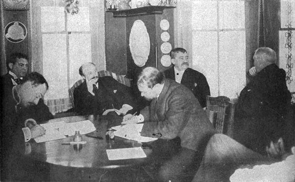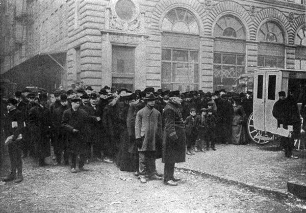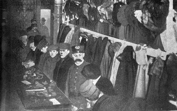 While heavily armed soldiers marched about the blistering[Pg 369] ruins with stately tread holding back those who only a few hours before had fought the police to save their valuables at the risk of their lives, the latter—energetic business men—were already preparing to re-open their establishments. Old buildings, long unused, private residences near the business section, in fact, every available structure to be secured blossomed forth within 24 hours with crudely lettered signs on board or cloth announcing that within was the temporary office of a firm. The names on some of these signs were those that rank high in the financial and commercial circles of the world, and in these temporary offices men who for years have known only mahogany desks worked on cheap tables and plain boards.
