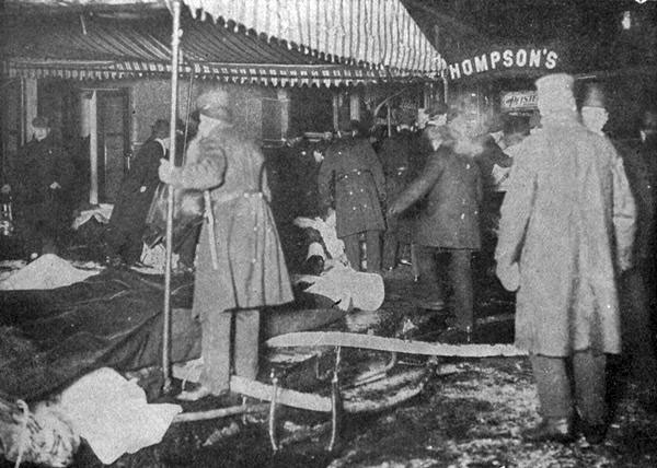| Heartrending Scenes Witnessed at the Undertaking Establishments—Friends and Relatives Eagerly Search for Loved Ones Missing After Theater Holocaust. | |