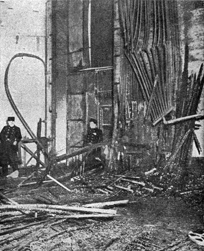 [Pg xi]God permitted this great evil in harmony with man's free will; he did not cause it. The evidence is overwhelming that human law, as well as divine law, had been consciously or unconsciously defied. Two thousand lives or more were brought together in a building professedly fire-proof, and warranted as the best, because the latest of its kind, in the city if not of the continent. It was not fire proof. The law forbade the crowding of aisles; they were filled from end to end, until almost every inch of standing room was taken up. The unusual number of exits was boasted of. Most of them were unseen or actually bolted and locked. The alleged fire proof curtain was a flimsy sham, and was resolved in almost a moment of time, into scattered fragments by the surging flames. The scenery was of the most combustible material, loaded down with paint and oil. Not a bucket of water was on the stage, and only one water stand-pipe without any hose. There never had been a fire apparatus of any kind in the balcony or the gallery. There was none in the auditorium except one small water stand pipe. There was not a fireman to answer the call for help. At no time had there been a fire drill by the employes of the theater. There were no notices posted to tell what to do in case of fire. There was no fire alarm box anywhere in the structure. Common prudence and common sense were completely set aside. Coroner Traeger in advance of the final finding of the jury, is reported to have said: "Sufficient proof has been already found to show that there was gross mismanagement and carelessness. There is no need of denial. Instead of being the safest theater in Chicago, the Iroquois was the unsafest."