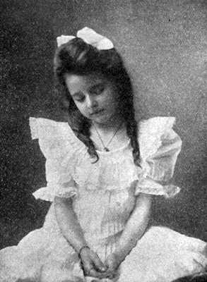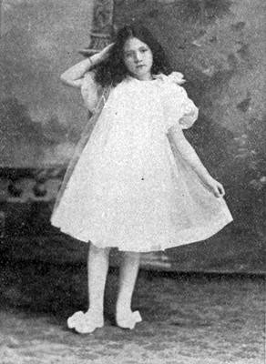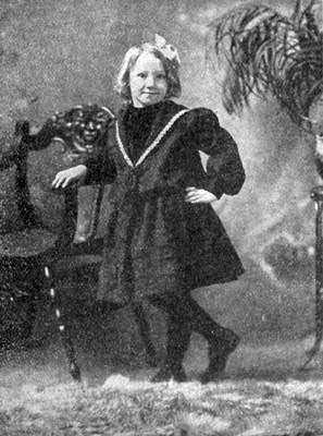 | Gertrude was ten years of age and with her younger sister, Amy, and her older brother, Allan, was a pupil of the Sumner school. All were burned in the fire. The picture was taken some time ago when she was a flower girl at a wedding. |
