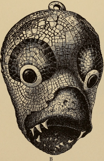 In pl. I is reproduced in colors the skull mask, and in pl. XVIII, fig. 1, the knife with handle. Reference to these is made on p. 141.